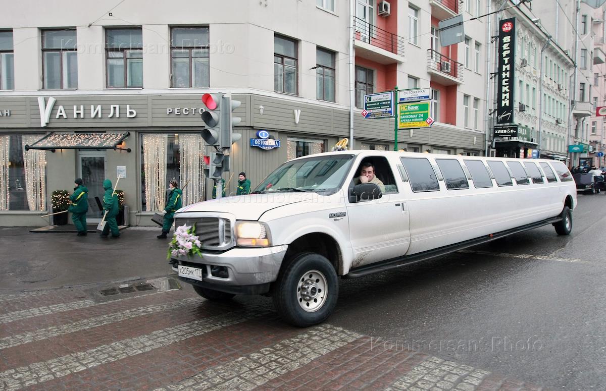 Виды Москвы. Свадебный лимузин на улице Остоженка.