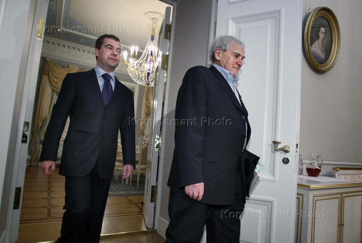 Президент России Дмитрий Медведев (справа) вручил писателю Даниилу Гранину (слева) орден Святого…