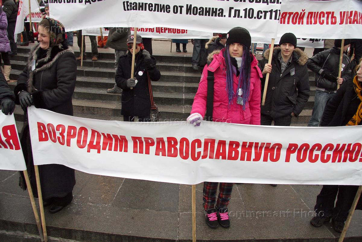Пикет православной дружины движения "НАШИ" в поддержку кандидатуры митрополита Смоленского и…