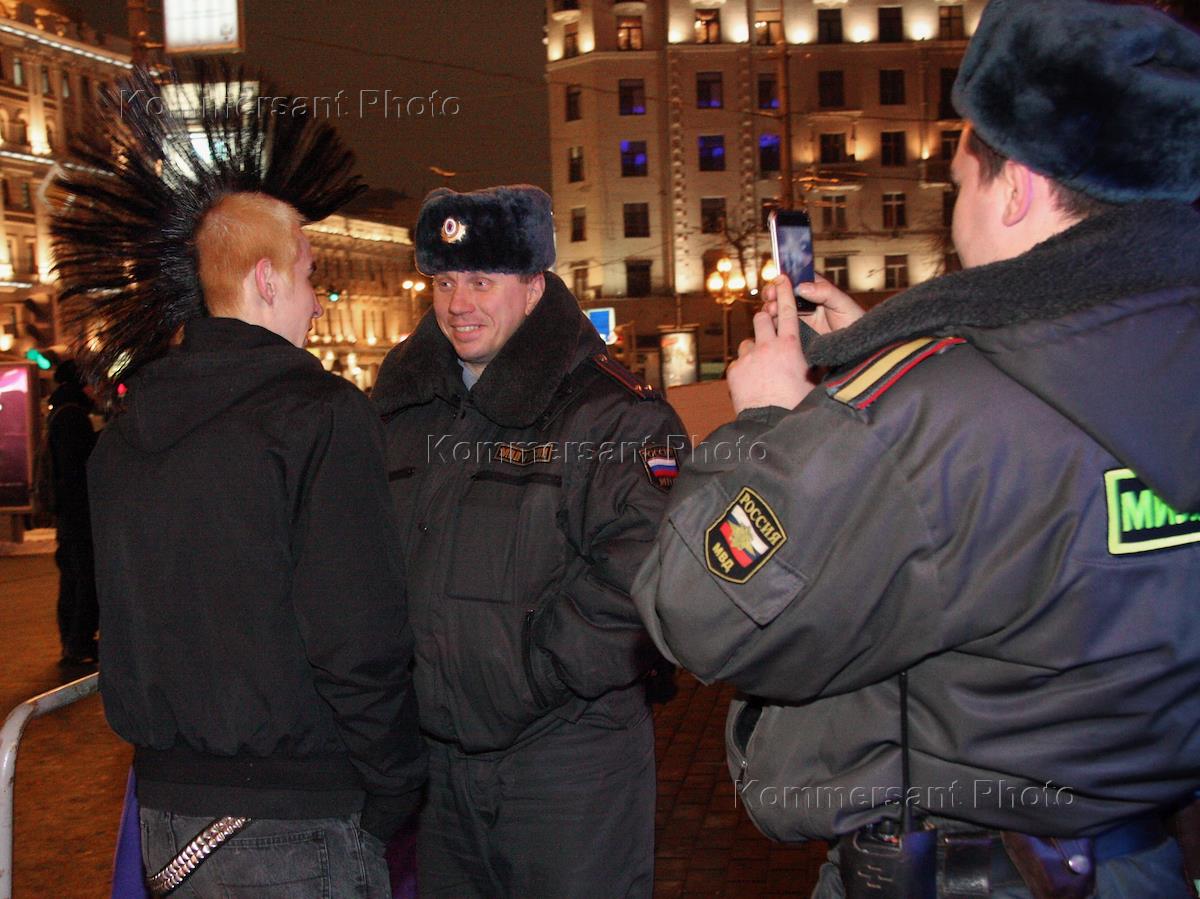 Милиционеры разговаривают с участниками пикета против поправок в 4-ую часть Гражданского Кодекса об…