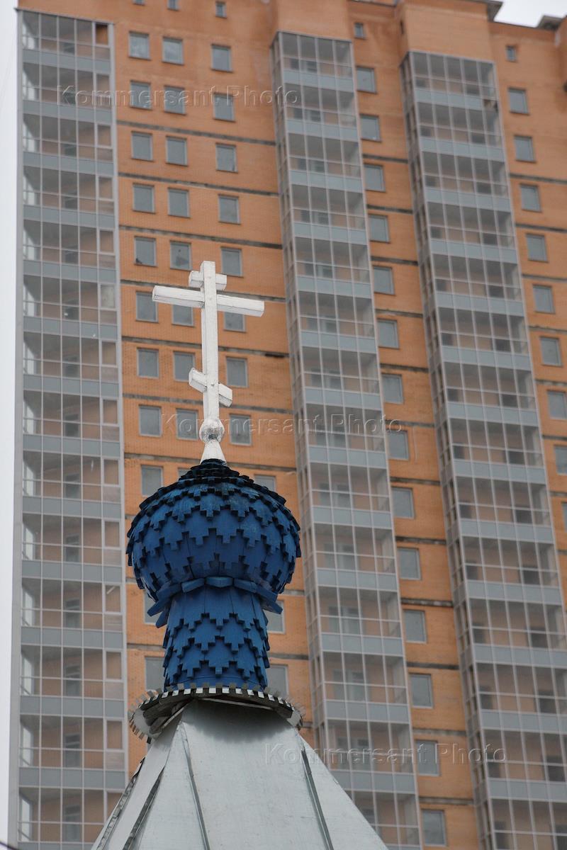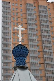 Часовня на фоне офисно-жилого комплекса на улице Братиславской.