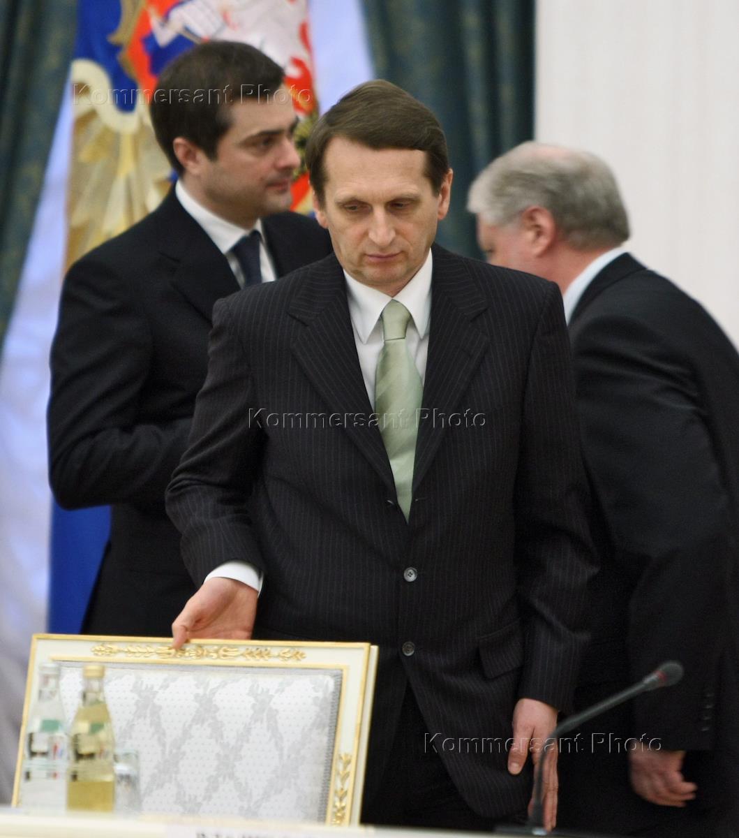 Руководитель администрации президента России Сергей Нарышкин (справа) и его первый заместитель…