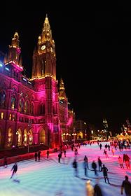 Каток с искусственным льдом возле городской ратуши.