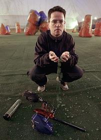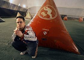 Президент "Пробизнесбанка" Сергей Леонтьев во время игры в пейнтбол.