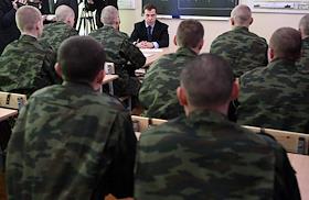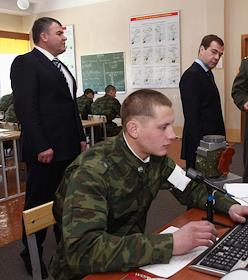 Президент России Дмитрий Медведев (в центре) в учебном классе 212-го Гвардейского окружного учебного…