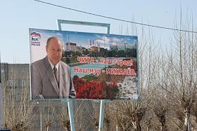 Виды Читы. Предвыборная агитация действующего мэра Читы Анатолия Михалева на улицах города.
