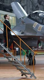 Президент России Дмитрий Медведев во время посещения Иркутского авиационного завода.