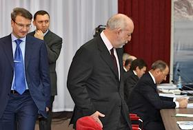 Слева направо: глава Сбербанка России Герман Греф, председатель Наблюдательного совета "БазЭл"…