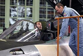Президент России Дмитрий Медведев во время посещения Иркутского авиационного завода.