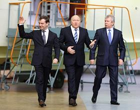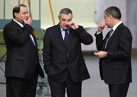 Президент ОАО "Объединенная авиастроительная корпорация" (ОАК) Алексей Федоров (в центре) и…