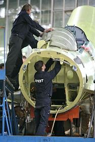 Президент России Дмитрий Медведев (слева) во время посещения Иркутского авиационного завода.