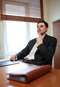 Генеральный директор компании "Московские окна" Роман Лукьянчиков во время интервью.