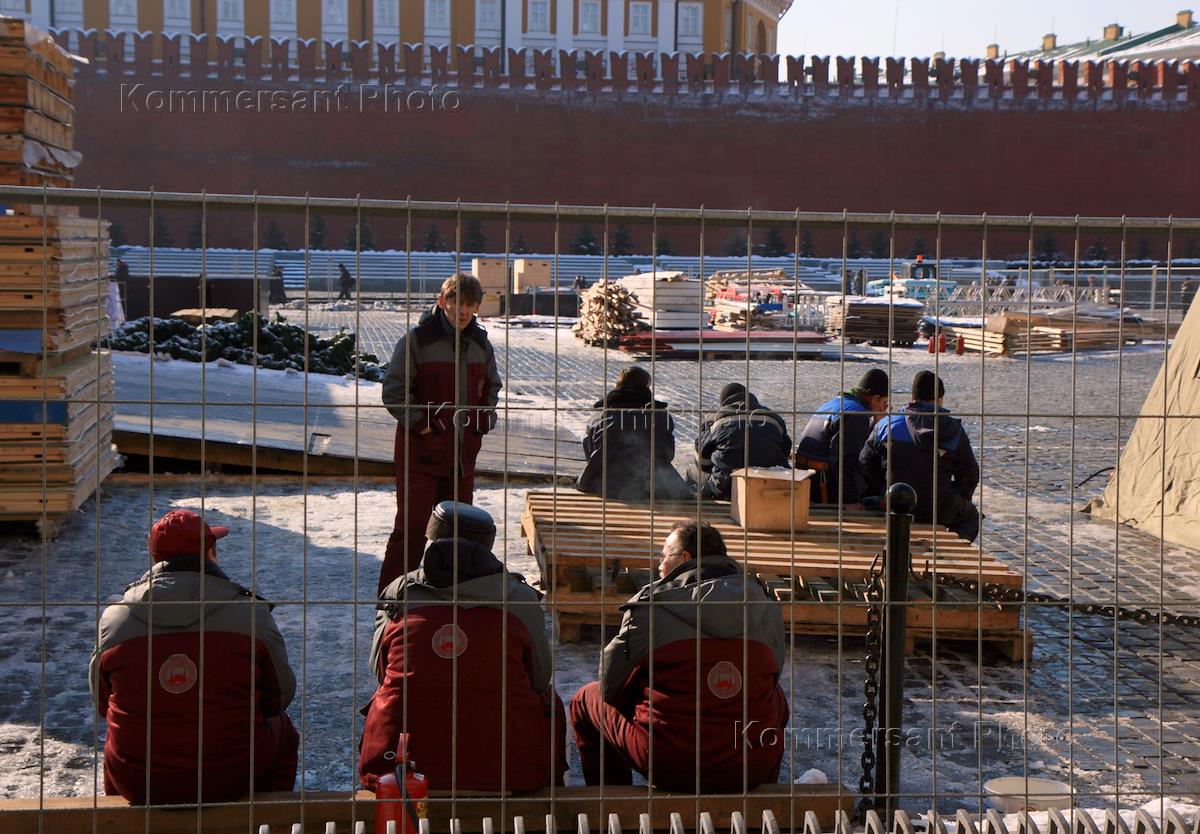 Жанровая фотография. Строители на Красной площади.