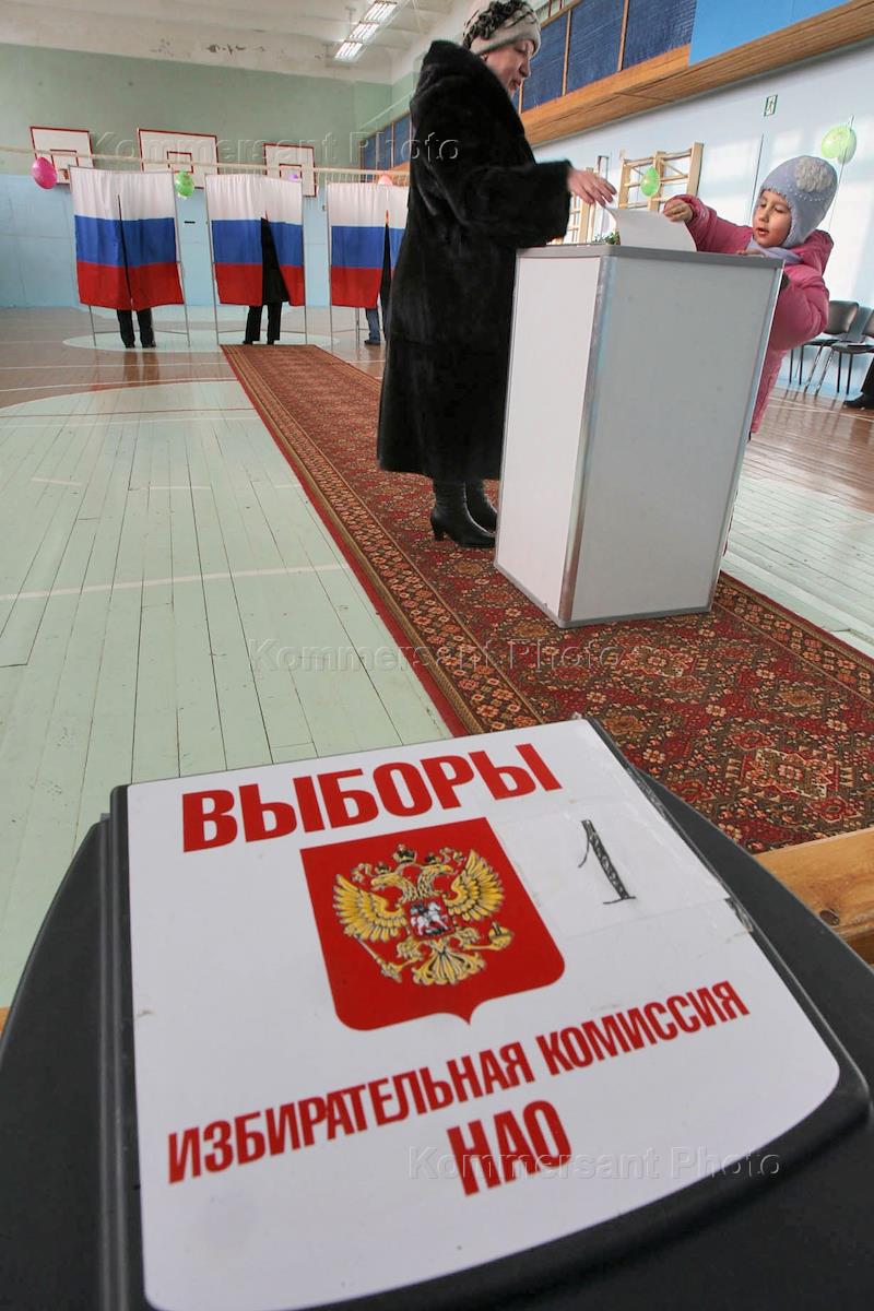 Выборы депутатов парламента Ненецкого автономного округа (НАО). Голосование на избирательном участке.