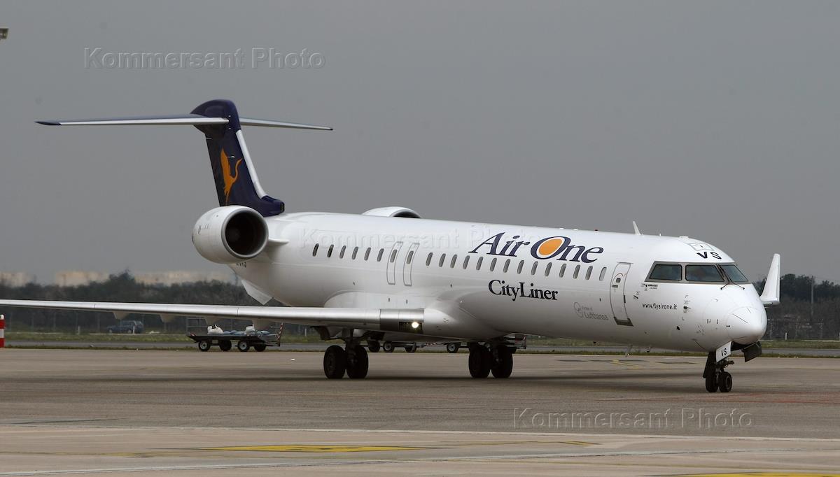 Жанровая фотография. Самолет авиакомпании Air One в аэропорту города Бари.