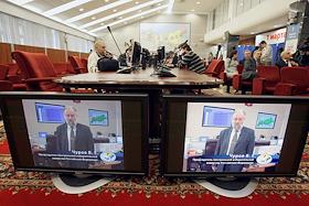 Брифинг главы ЦИК Росии В. Чурова и видеоконференции с избирательными комиссиями девяти субъектов РФ.