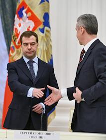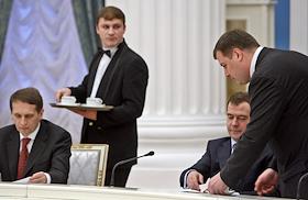 Президент России Дмитрий Медведев (слева) и заместитель председателя правительства России -…