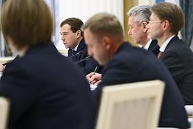 Президент России Дмитрий Медведев (второй слева) и заместитель председателя правительства России -…