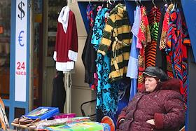 Уличная торговля одеждой у станции метро "Красная Пресня".