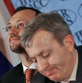 Слева направо: руководитель департамента автострахования компании "Росгосстрах" Дмитрий Пурсанов,…
