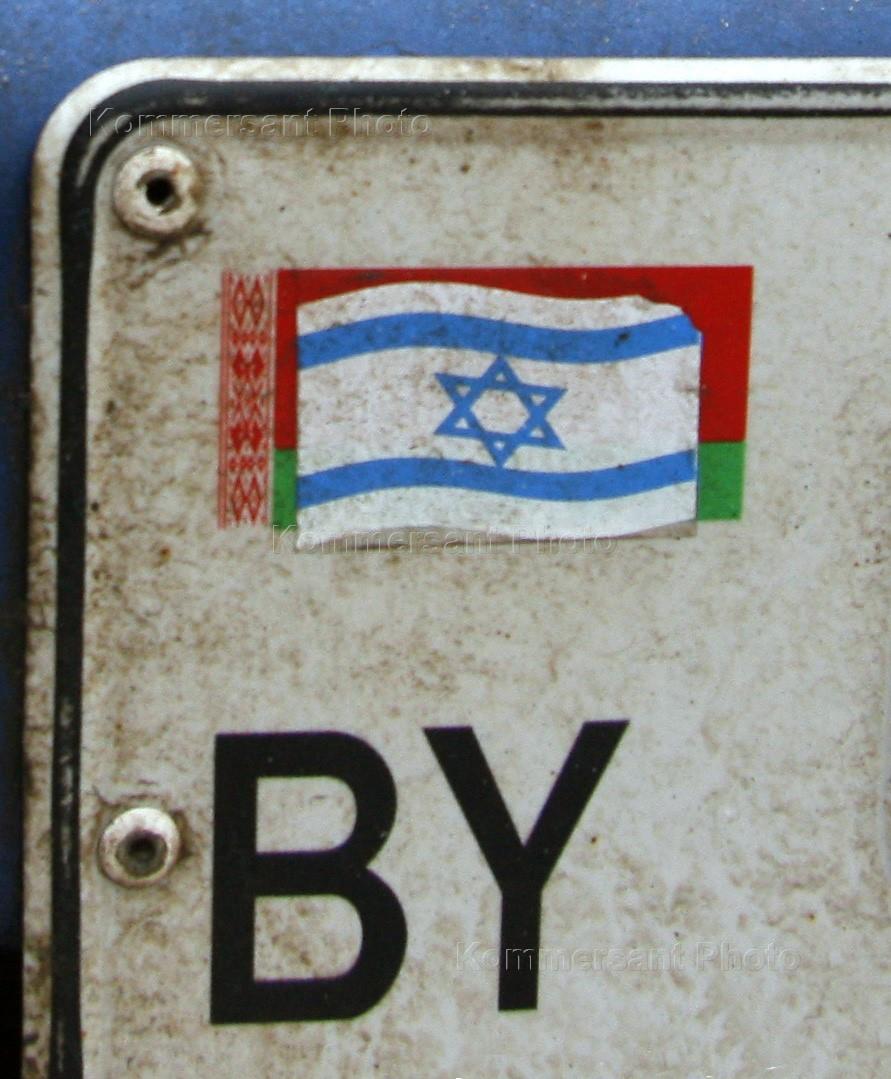 Фотографии из архива. Автомобильный номер с наклееным флажком Израиля поверх флажка Белоруссии.