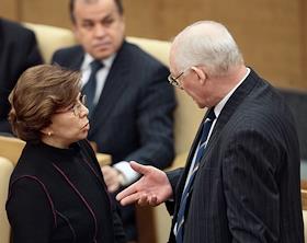 Председатель комитета Государственной думы России по охране здоровья Ольга Борзова (справа) во время…