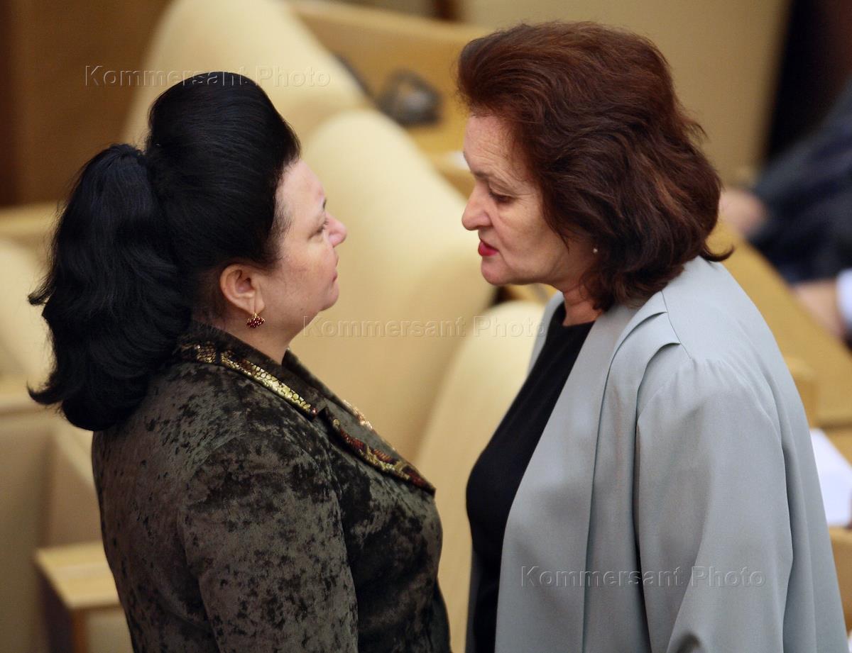 Член Комитета Государственной Думы России по бюджету и налогам Раиса Кармазина (слева) во время…