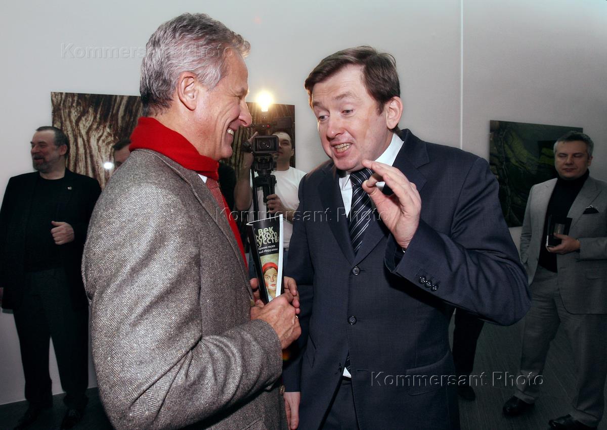 Помощник президента России Сергей Ястржембский (слева) на пресс-показе своей выставки фотографий…