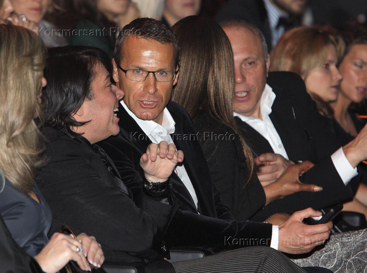 Певец Филипп Киркоров (слева) и модельер Валентин Юдашкин (справа) с супругой Мариной (в центре) на…