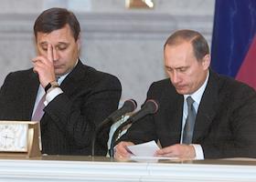 Председатель Правительства России Михаил Касьянов (слева) и Президент России Владимир Путин (справа)…
