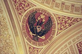 Герб России - Двуглавый орел в интерьере Александровского зала Большого Кремлевского Дворца.
