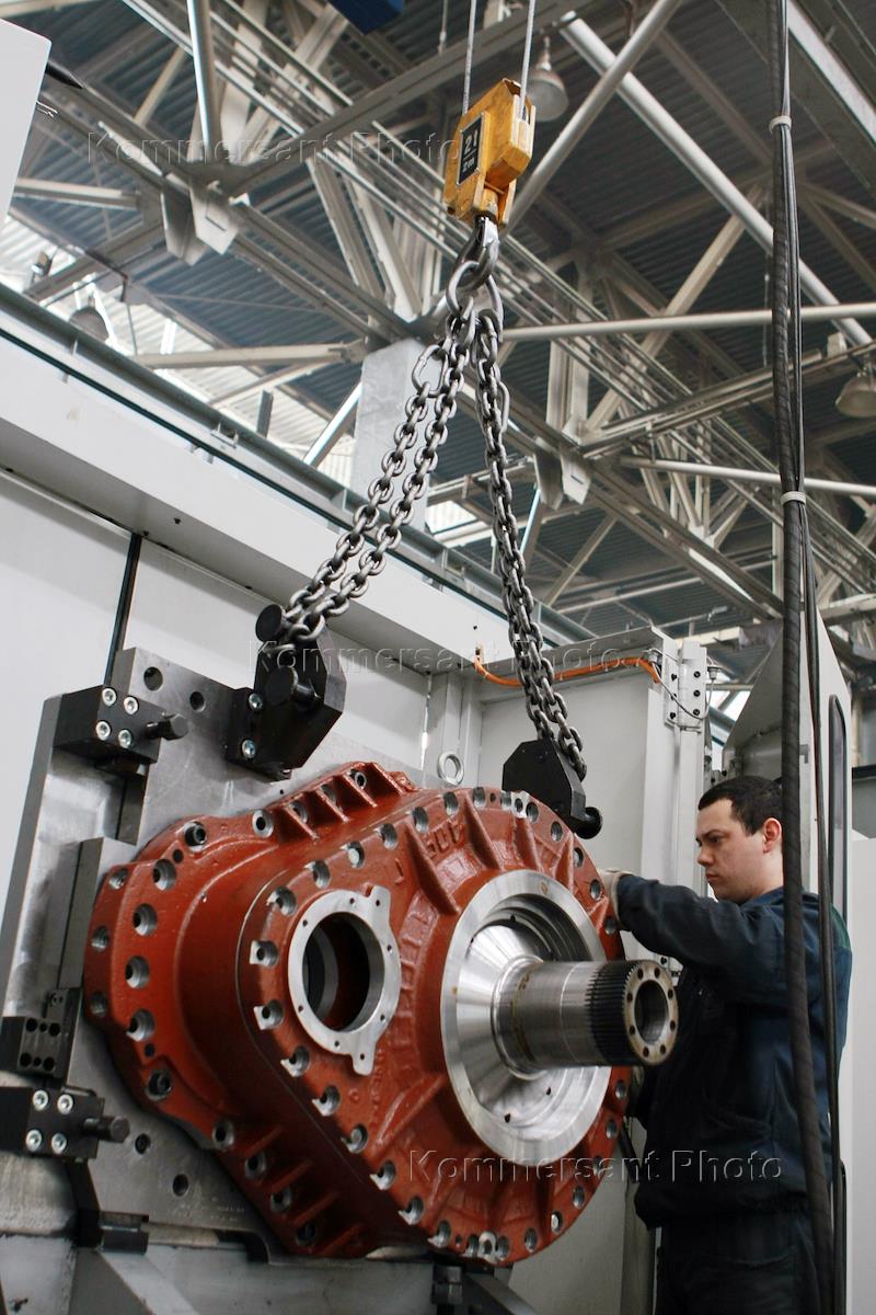 Конвейер по сборке тракторов в цехе Тракторного завода "Промтрактор".