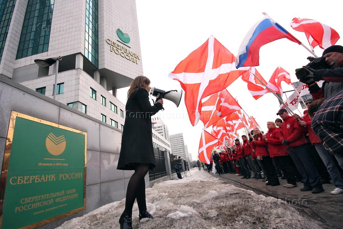 Пикет движения "Наши" у главного офиса "Сбербанка" с требованием добровольного отказа менеджеров…