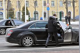Жанровая фотография. Офицеры Федеральной службы охраны и автомобили администрации города.