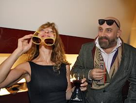 Слева направо: главный редактор журнала "Hello!" Светлана Бондарчук, художник Павел Каплевич и…
