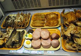 Жанровая фотография. Витрина отдела кулинарии в магазине.