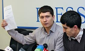 Бывший журналист телекомпании "Первый канал" Эльхан Мирзоев во время пресс-конференции на тему:…