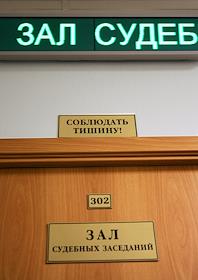 Вход в зал судебных заседаний в Симоновском районном суде. Табличка "Соблюдать тишину!".