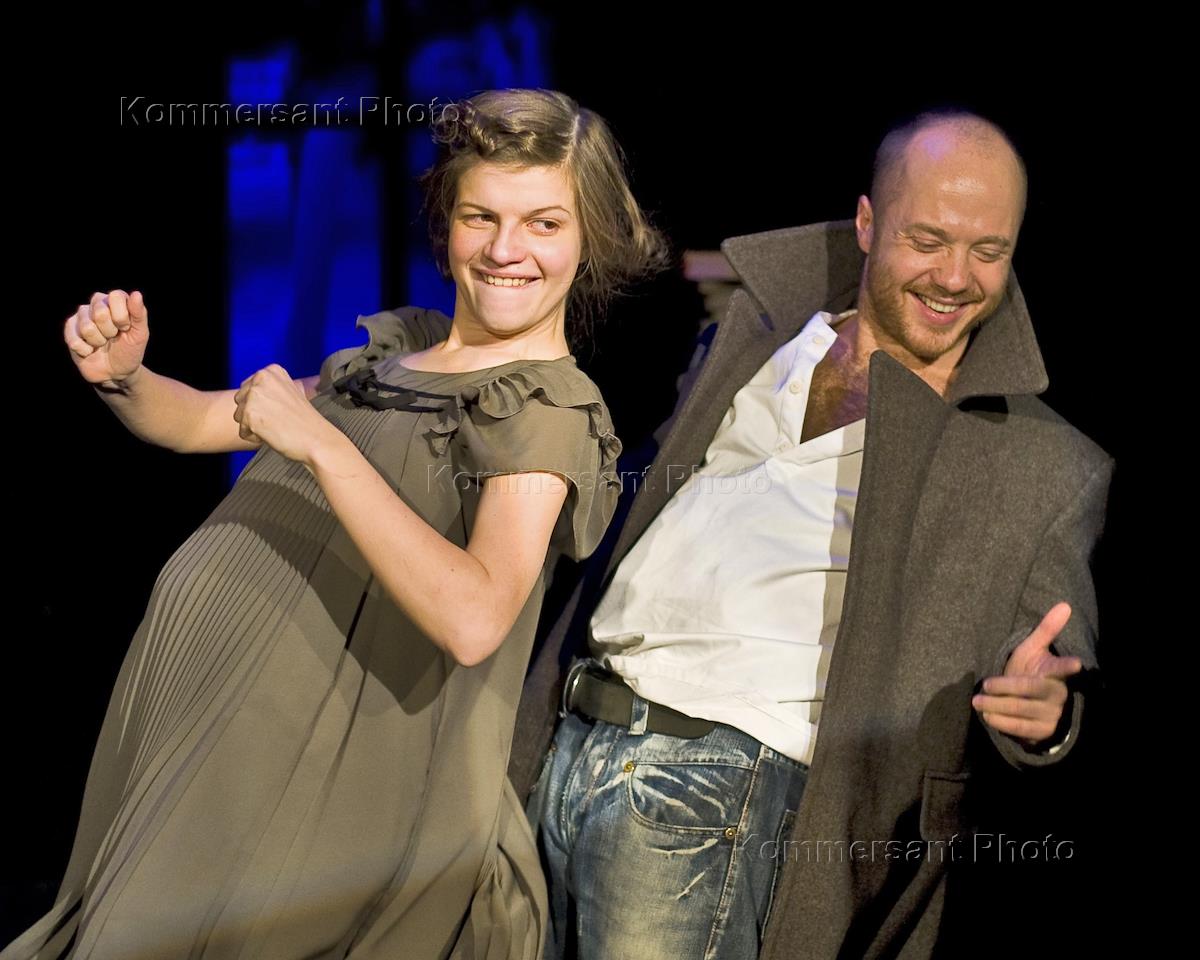Актеры Агния Кузнецова и Евгений Стычкин в спектакле "Девушка и революционер" Игоря Симонова в…