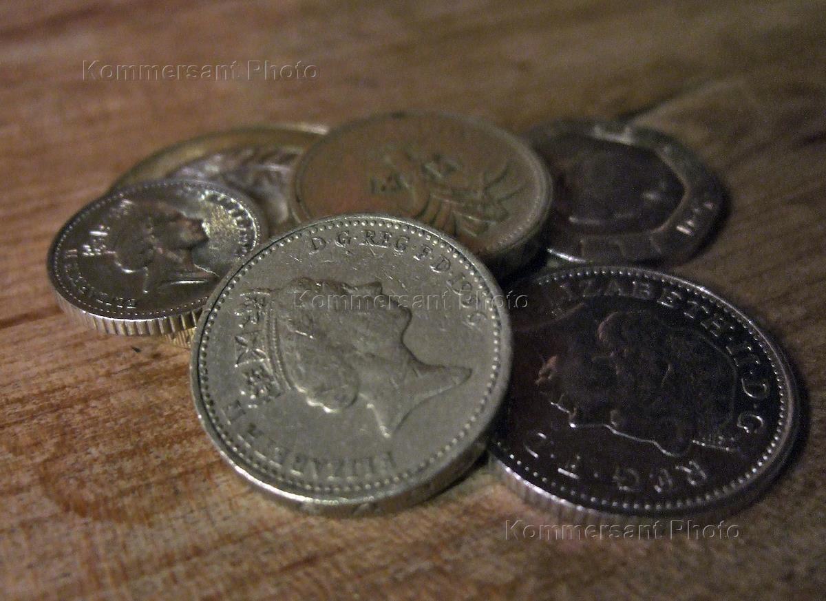 Монета достоинством 1 фунт стерлингов с изображением королевы Великобритании Елизаветы II.