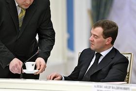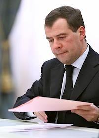 Слева направо: президент России Дмитрий Медведев, министр здравоохранения и социального развития…