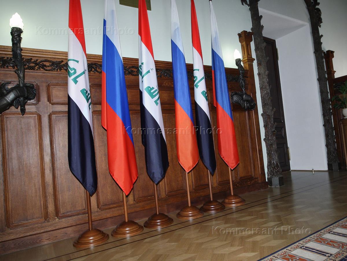 Флаги России и Ирака в Доме приемов правительства России, где прошла официальная встреча…