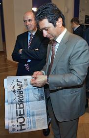 Президент Юниаструмбанка Гагик Закарян (справа) на праздновании 15-летия Юниаструмбанка в…