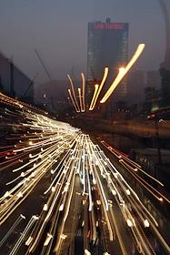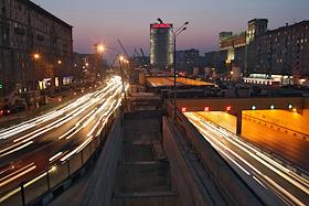 Виды ночной Москвы. Ленинградский проспект в районе метро "Сокол".