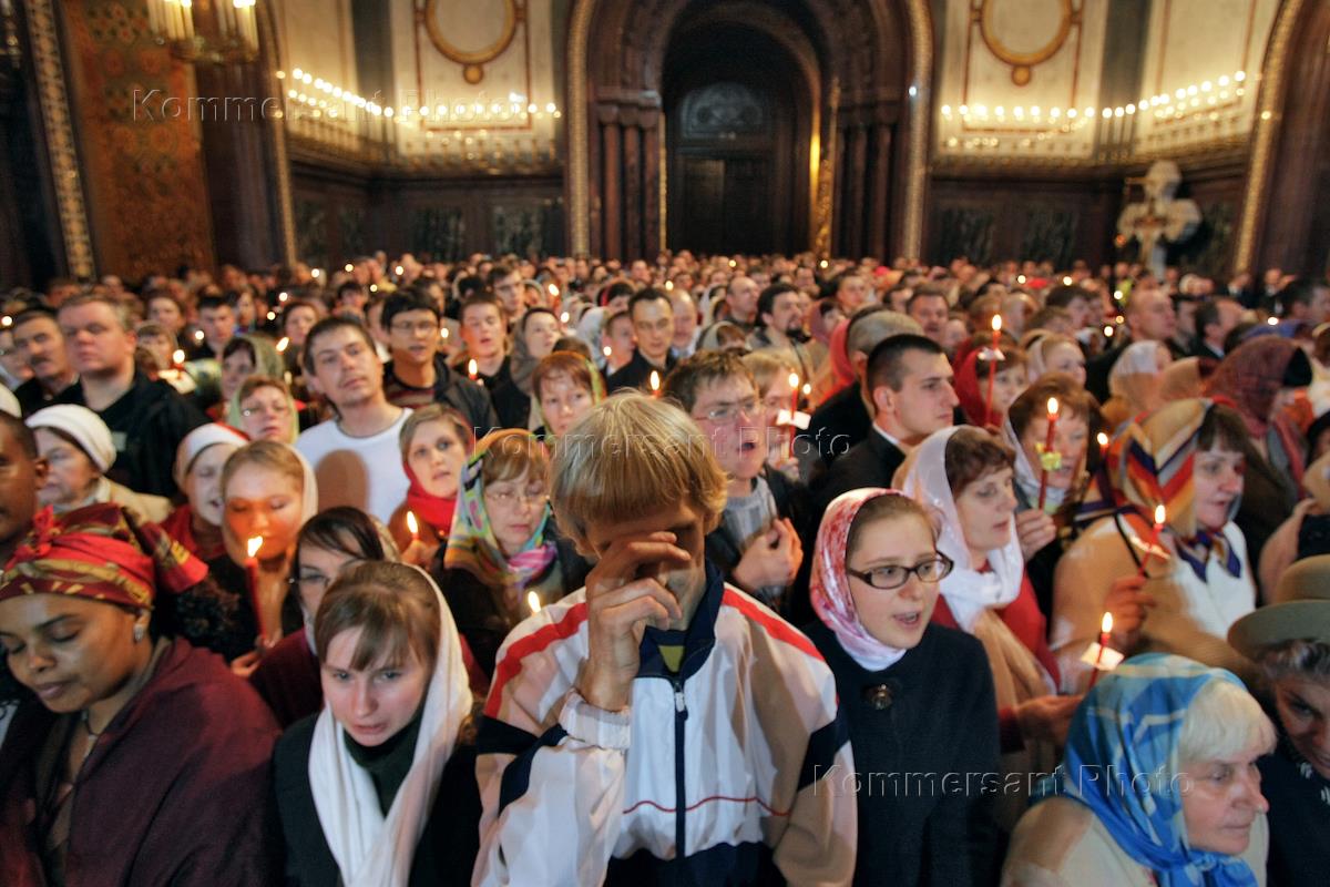 Крестный ход, Пасхальная заутреняя и праздничная божественная литургия в храме Христа Спасителя.