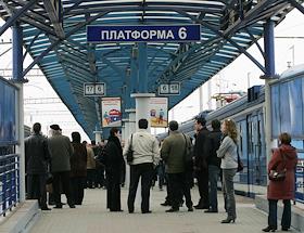 Пассажиры на платформе пригородных поездов Горьковской железной дороги (ГЖД)