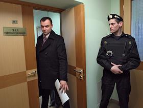 Жанровая фотография. Сотрудник службы судебных приставов у входа в зал заседаний Преображенского…