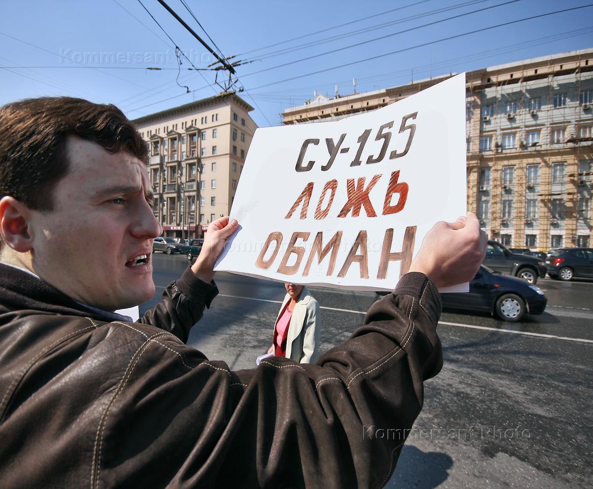 Участник митинга против действий строительной компании "СУ-155". Плакат с надписью "СУ-155 Ложь.…