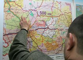 Мужчина указывает на логистическую схему расположения Нижнего Новгорода.