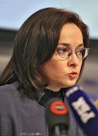 Министр экономического развития России Эльвира Набиуллина (справа) перед началом пресс-конференции…